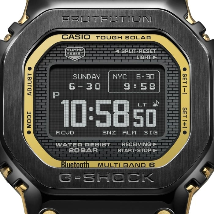 Built with shock resistance and 200-meter water resistance, it is engineered for demanding environments. Tough Solar power, Bluetooth® smartphone connectivity, and Multi Band 6 radio-controlled time calibration ensure exceptional accuracy and effortless time adjustment wherever you are in the world.
