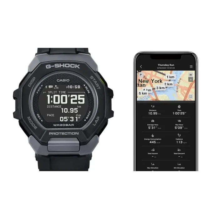 Bluetooth mobile link technology connects seamlessly to your smartphone for automatic time adjustment, easy watch settings, GPS-based distance correction, and access to approximately 300 world time cities. Stay updated throughout the day with smart notifications for incoming calls, emails, social media updates, calendar events, and reminders. The phone finder feature adds extra convenience when you misplace your device.
