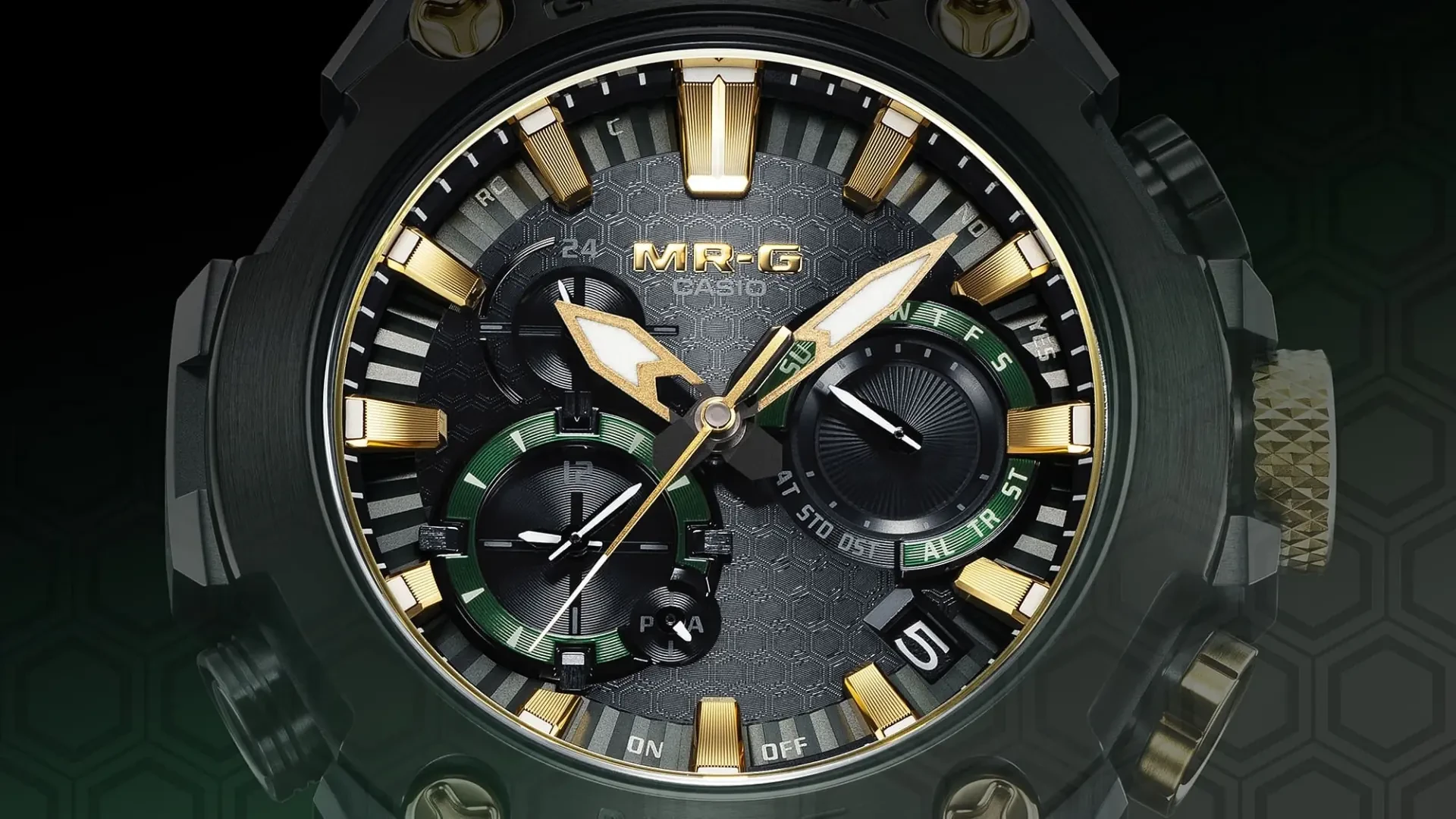Titanium case, bezel, and band with green DLC coating