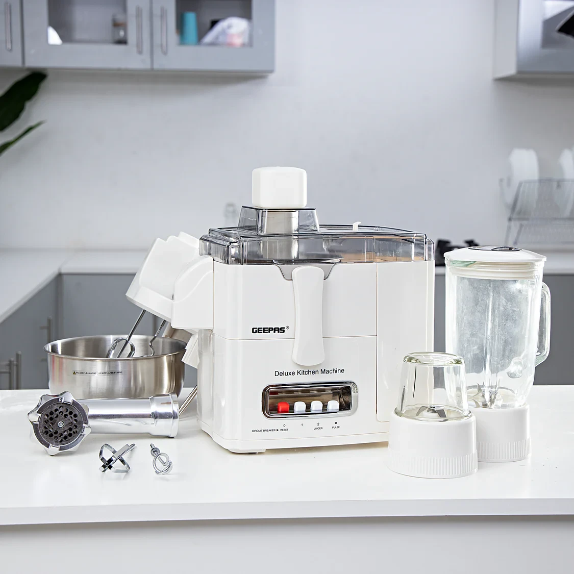 The Geepas 10-in-1 Food Processor & Juicer GSB1650 is a versatile, powerful, and convenient all-in-one kitchen appliance designed to make food preparation easier and more efficient. It features a 400W motor that provides strong performance, along with a 2-speed control option that includes a pulse function, allowing you to handle a range of tasks such as blending, chopping, juicing, grinding, and even ice crushing. The large 1.5L transparent jar makes it easy to prepare smoothies, juices, sauces, and more. This appliance is ideal for modern kitchens, combining durability, precision, and multiple functions in a compact and user-friendly design.