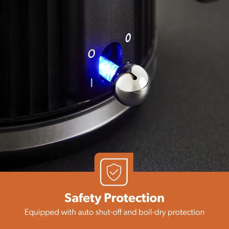 The Geepas K1.7L Fluted Black Jug Kettle GK38068UK-BK is made for quick and efficient boiling, making it great for tea, coffee, and other hot drinks. It uses a strong 3000W heating element to heat up fast without wasting too much energy. The sleek fluted black jug looks stylish in any kitchen, and the safety features like auto shut-off and boil-dry protection help keep things safe and easy to use. The 360-degree cordless base and comfortable handle make it simple to pour and carry around.
