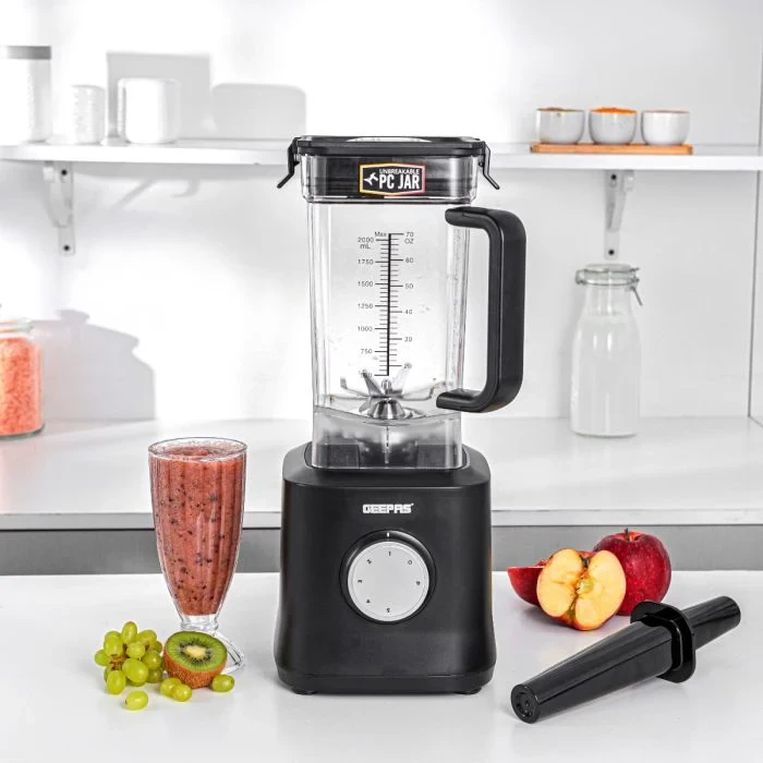 The Geepas 2-Liter Professional Blender GSB44078N is a top-notch kitchen tool built for tough blending and mixing tasks. It comes with a strong 2000W motor and five speed settings, including a pulse function, allowing you to achieve the perfect consistency for smoothies, sauces, soups, and more. The blender includes a 2-liter jar made from durable, shatterproof transparent plastic, which offers both convenience and capacity for making large portions. The stainless steel blades are designed for precise cutting, ensuring smooth and uniform results every time. This versatile appliance is perfect for both home cooks and professional chefs, offering a blend of power, efficiency, and reliability.