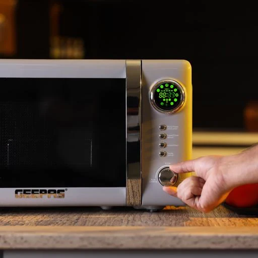 The Geepas 20L Digital Microwave Oven GMO2026GW is made for cooking in a small space. It has 700W power that helps heat food quickly and evenly. It has 12 preset cooking settings to make things easier. It also comes with grill and defrost options, making it more useful. There is a child lock to keep it safe, and its small, nice design looks good in any kitchen.