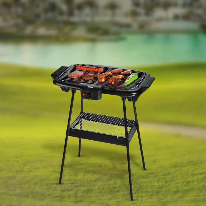 Grill your favorite meals to perfection with the Geepas 2000W Electric Barbecue Grill, built for power, precision, and convenience. The 2000W high-performance heating element ensures quick and even heat spread, while the auto-thermostat control keeps the temperature steady for consistently great results. The grill features overheat protection and a waterproof, compact design, making it safe and durable to use both indoors and outdoors. Perfect for cooking chicken, beef, seafood, and vegetables, it combines efficiency with easy cleaning and a modern look — a great addition to any kitchen or outdoor setup.