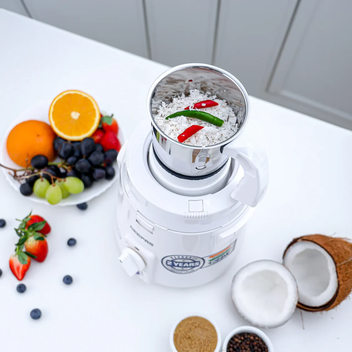- Functions: Grinding, Mixing, Blending