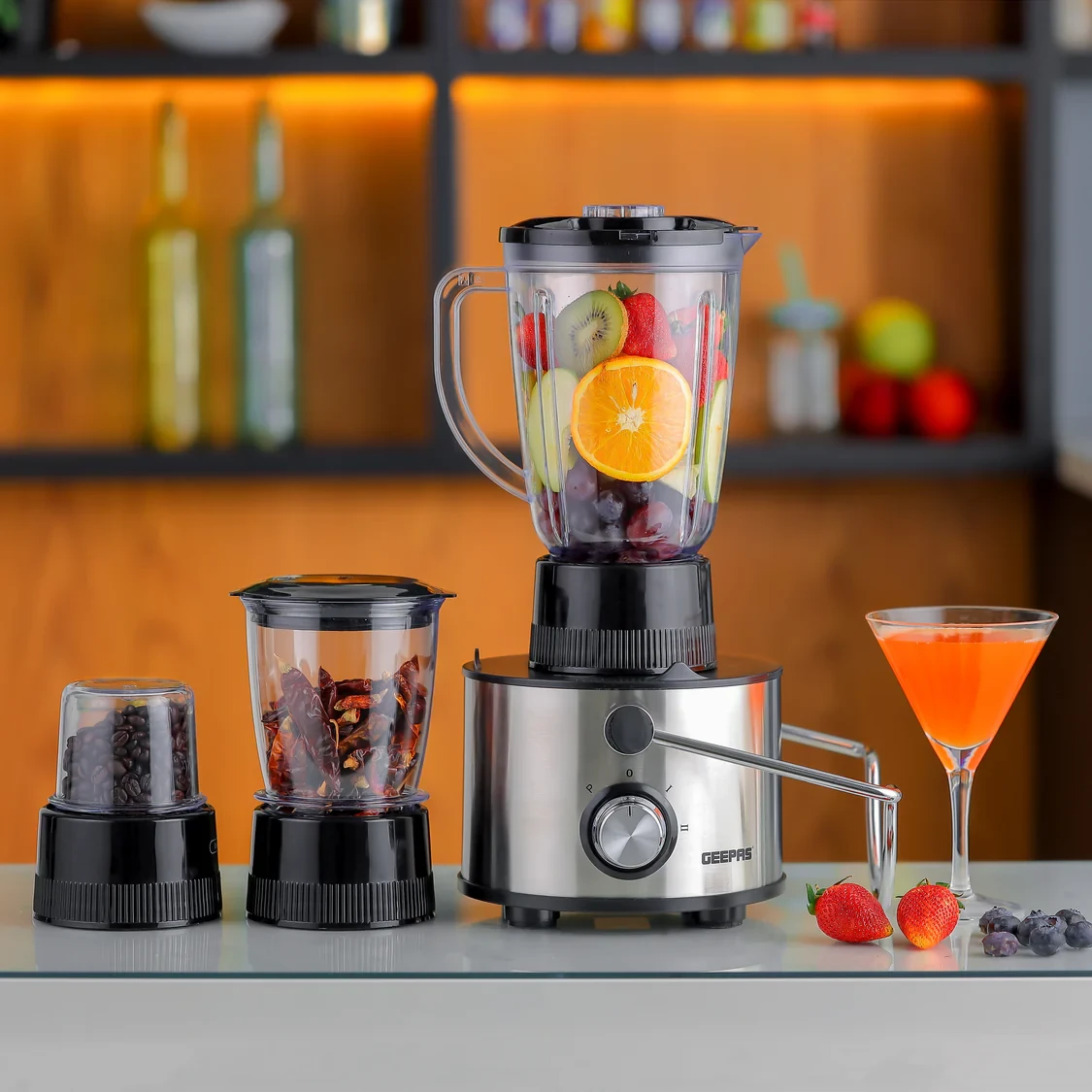- 4-in-1 multifunction design: blender, juicer, grinder, and mixer