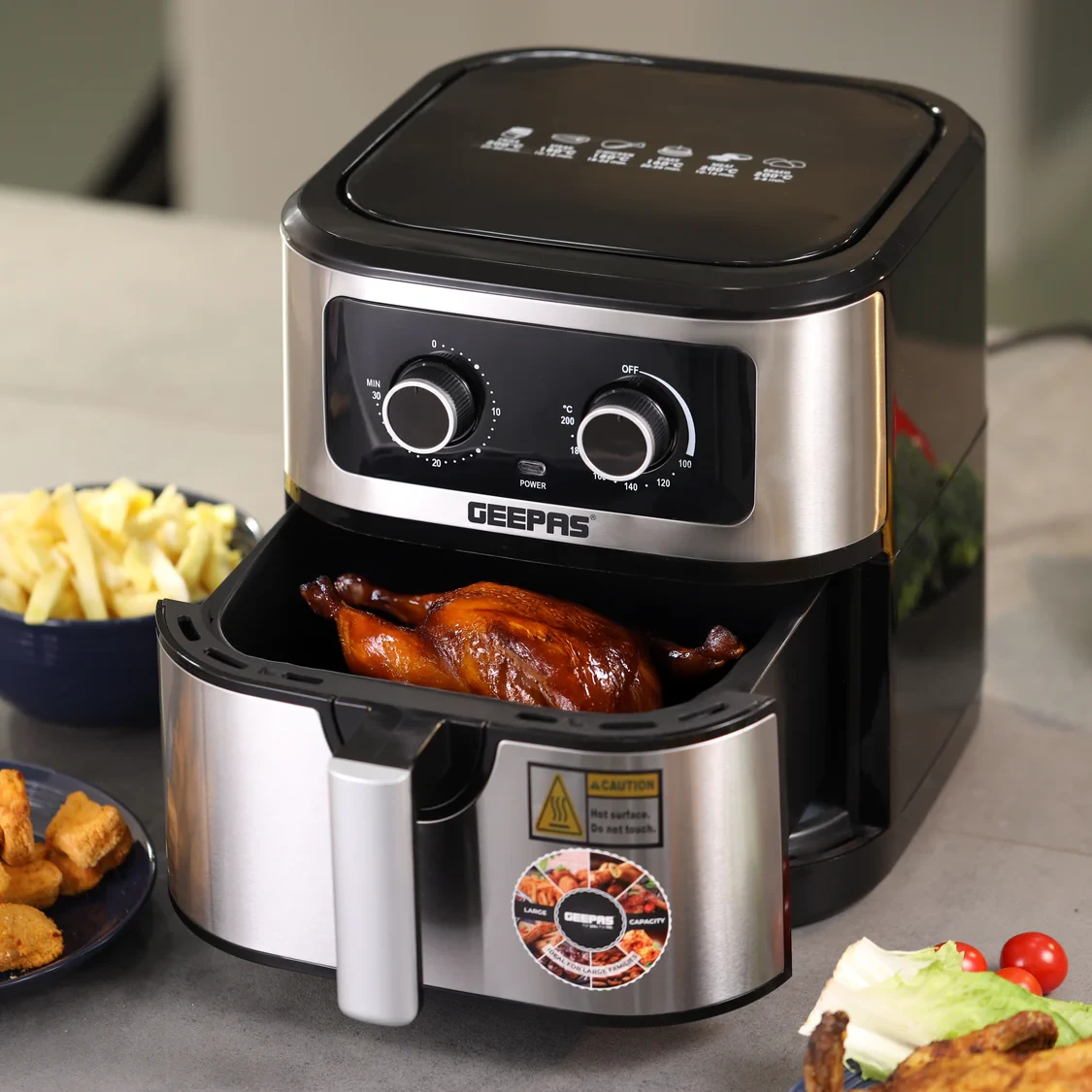 - Multi-function cooking: fry, bake, roast, grill, reheat