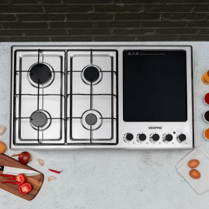 The Geepas GGC31036 Built-In Gas & Electric Hob combines versatility and style for a modern kitchen. Featuring four gas burners alongside a durable ceramic electric hot plate, this hob adapts to a wide range of cooking tasks. Its stainless steel body is not only sleek and rust-resistant but also easy to clean, while the built-in design saves countertop space and enhances your kitchen aesthetic.