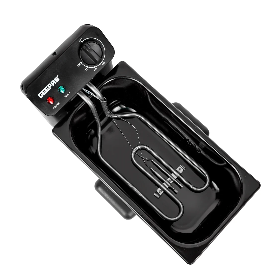 Fry your favorite snacks to perfection with the Geepas Deep Fryer GDF36015N. This fryer has a strong, brushed stainless steel body and a powerful heating element that goes all the way to the bottom of the pot, ensuring your food fries quickly and evenly. It has a 3.0-liter capacity, making it perfect for making fries, chicken, fish, and other treats for your whole family. You can adjust the temperature to match the needs of different foods, and the basket that comes with it is easy to take out and clean. The black and silver look of this fryer makes it a stylish addition to any kitchen, while also offering great performance and safety.