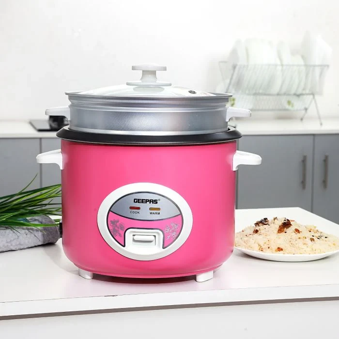 • 1.8L capacity – ideal for everyday use• Strong heating element for fast and even cooking• 3-in-1 functions: Cook, Steam, and Keep Warm• Non-stick inner pot for easy cleaning and better rice texture• Comes with a steamer tray for healthy cooking options• Automatic keep-warm function maintains serving temperature• Cool-touch handles for safe handling• Indicator lights for easy operation• Compact and durable build, ideal for modern kitchensSpecifications:• Brand: Geepas• Model: GRC4329• Type: Deluxe Rice Cooker• Capacity: 1.8L• Functions: Cook, Steam & Keep Warm• Inner Pot: Non-Stick Coated• Power: 700W (Approx.)• Steamer Tray: Included• Body Material: Durable Metal• Lid Type: Stainless Steel• Control Type: Automatic with Indicator Lights• Handle Type: Cool-Touch• Color: White / Silver• Suitable For: Rice, Steamed Vegetables, Dumplings, Fish, etc.• Easy to Use & Clean Design