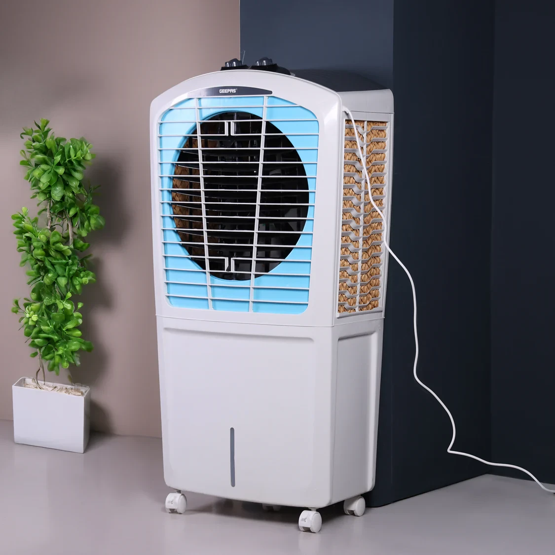 The Geepas GAC1519H1 Desert Air Cooler is designed for high- performance cooling in large spaces. With a 100L water tank, it ensures long- lasting cooling without frequent renewals. The 3- side honeycomb pads and Bacteria Shield Technology enhance cooling effectiveness while maintaining aseptic air. Its important tailwind and rust-free body give durable and dependable operation, making it ideal for homes, services, and marketable spaces.