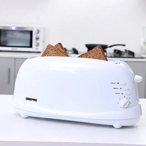 The Geepas GBT9895 4-Slice Bread Toaster is made for efficiency, ease of use, and consistently great toast every time. It features a strong 1100W motor that toasts up to four slices of bread quickly and evenly. You can adjust the browning settings to get the perfect level of crispness, and there's a cancel button to stop the toaster right away if needed. The body is made of heat-resistant material, making it safe and comfortable to use. The removable crumb tray makes cleaning easy, and the built-in cord storage helps keep your countertop tidy and organized. This toaster is perfect for busy mornings and family breakfasts, offering great performance, safety, and a modern look that fits well in any kitchen.