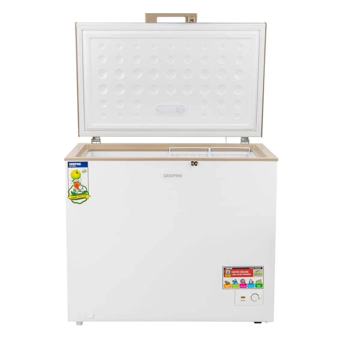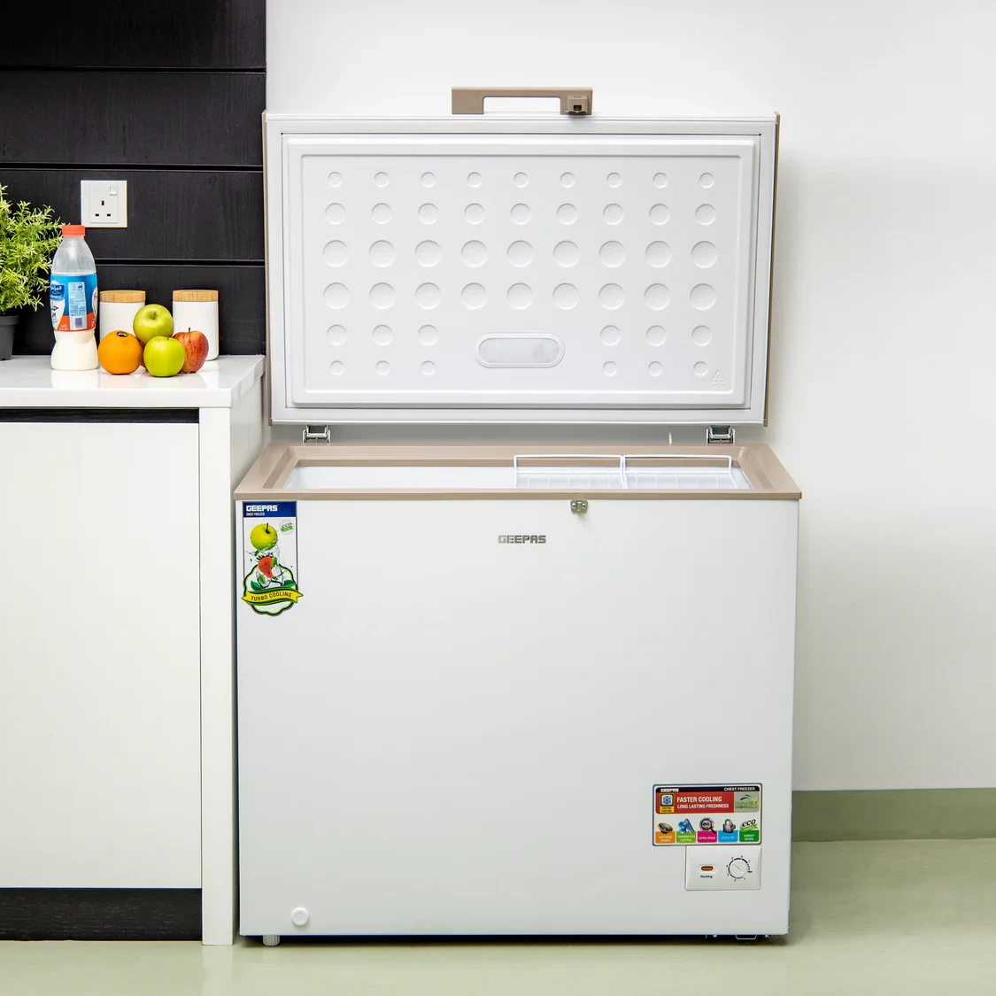 The Geepas GCF3006WAH casket Freezer is designed for effective and dependable storehouse of large amounts of frozen foods. With a commodious 300L capacity and energy-effective cooling system, it ensures optimal preservation while consuming minimum power. The malleable thermostat allows precise temperature control, and the fast freezing function keeps food fresh for longer. Its low- noise operation ensures quiet performance, while the durable construction provides long- lasting use. Ideal for homes, services, and small marketable spaces.