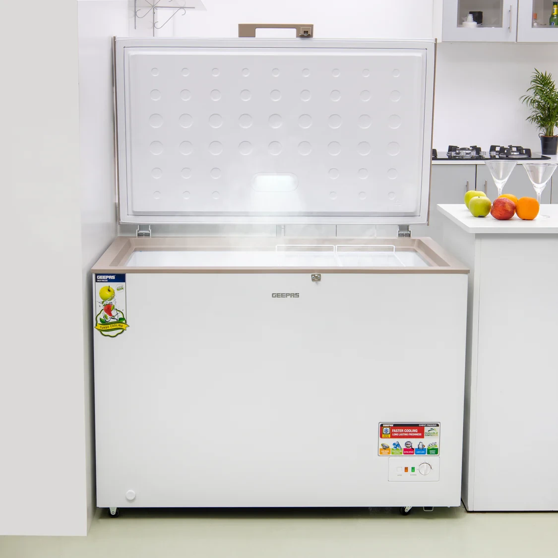 The Geepas GCF3506WAH casket Freezer is designed for effective and dependable storehouse of large amounts of frozen foods. Featuring a 350L capacity and a important 155W motor, it ensures quick and harmonious freezing. The malleable thermostat allows precise temperature control, while the erected- in LED light provides clear interior visibility. Its low- noise operation and durable construction make it an ideal choice for homes, services, and small marketable spaces seeking a reliable deep freezer.