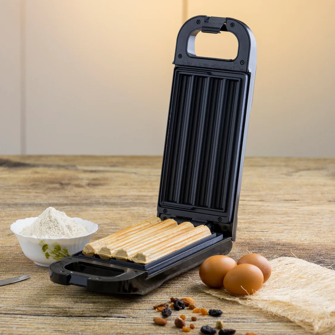 • 750W power for quick and even churros baking• Non-stick plates ensure easy food release and hassle-free cleaning• Thermostat-controlled temperature for consistent cooking results• Power and ready indicator lights for simple operation• Compact design ideal for home use and easy storage• Cool-touch handle for safe use• Stable non-slip feet for secure countertop placement• Perfect for making fresh, golden, and crispy churros anytimeSpecifications:• Brand: Geepas• Model: GCM36540• Power: 750W• Plate Type: Non-stick churros molds• Temperature Control: Thermostat-controlled heating• Indicator Lights: Power & ready indicators• Safety Feature: Cool-touch handle, non-slip base• Design: Compact and portable• Heating: Quick and even heat distribution• Suitable For: Making churros, snacks, and desserts