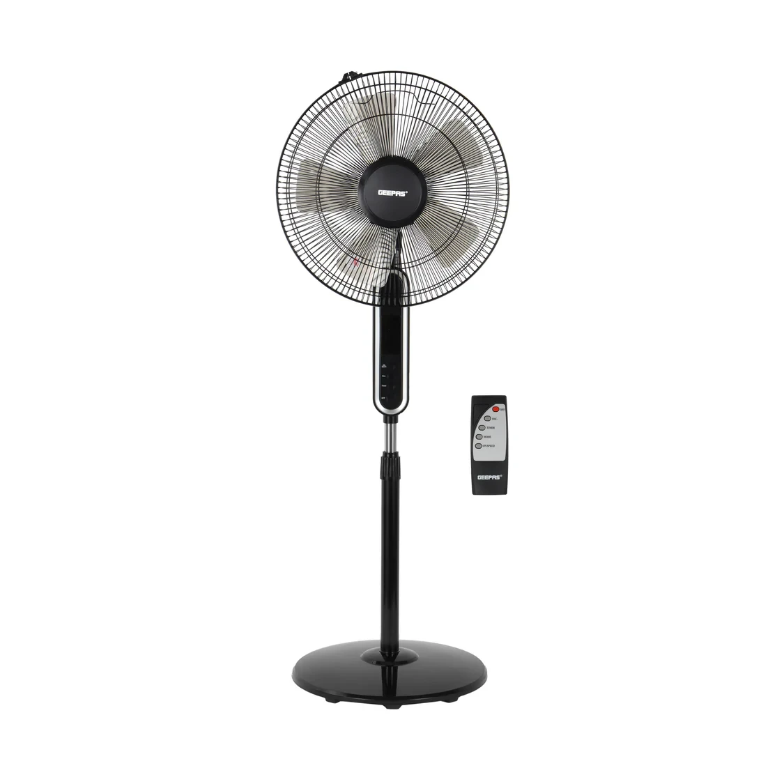 • A powerful 60W motor that gives you strong and efficient airflow• A 16-inch stand fan suitable for bedrooms, living rooms, and offices• 5 tough AS blades that help deliver better air movement• 3 speed settings so you can choose the right level of cooling• Wide oscillation that covers more space with each breeze• Adjustable height for flexible setup and use• A 7.5-hour timer that helps save energy• A remote control for simple and easy adjustments• A stable base to keep the fan safe and steadySpecifications:• Brand: Geepas• Model: GF21112• Fan Size: 16 Inch• Power: 60W• Speed Settings: 3• Blade Material: AS (Acrylonitrile Styrene)• Oscillation: Yes, Wide Angle• Timer: 7.5 Hours• Control Type: Remote Control• Application: Home, Office, Living Room, Bedroom
