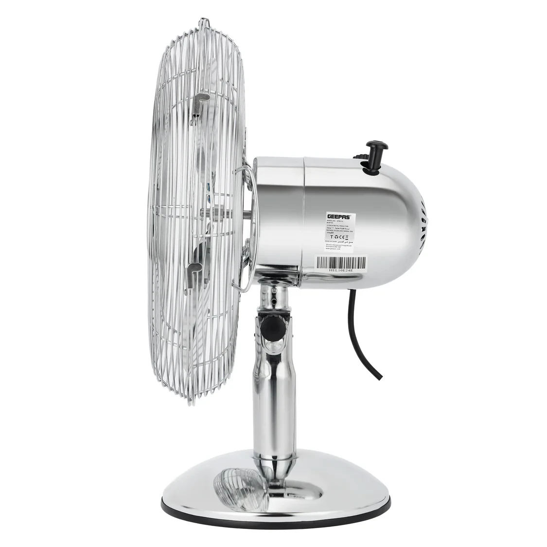 - 12-inch metal fan made with durable materials for long-term use- High-performance motor that provides powerful and efficient cooling- Three-speed adjustable control for customized airflow- Wide-angle oscillation that ensures even air distribution- Adjustable tilt for precise control over where the air goes- Stable base that keeps the fan firmly in place on tables or desks- Versatile use in homes, offices, and workspaces- Quiet operation that helps maintain a comfortable environmentSpecifications:- Brand: Geepas- Model: GF9610- Fan Type: Metal Table Fan- Size: 12 Inch- Motor Type: High-Performance Motor- Speed Settings: 3- Oscillation: Yes, Wide Angle- Tilt Adjustment: Yes- Body Material: Metal- Application: Home, Office, Workspaces