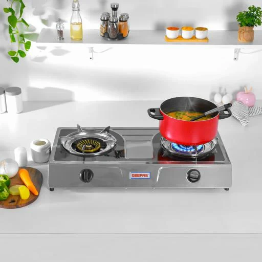 The Geepas GK6856 Stainless Steel Gas Cooker is designed for strong performance, long-lasting use, and efficient energy use. It comes with two heavy-duty cast iron burners that provide a total power of 5.6kW, making sure your food cooks quickly and evenly. The automatic ignition system makes it easy and safe to light the flames without any hassle. The cooker has a stainless steel body that won’t rust and is simple to clean. It also uses less gas and saves up to 60% of energy, making it great for both home and professional kitchens.