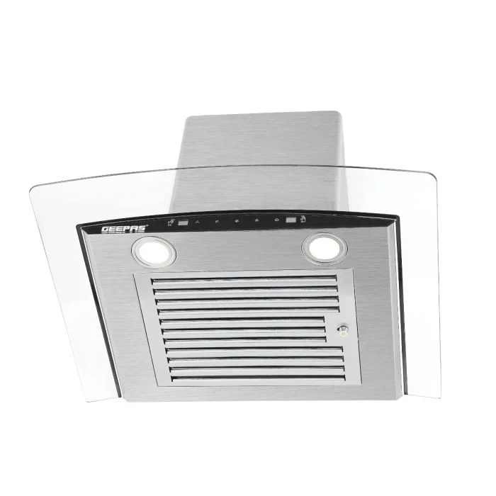 - Strong 750 m³/hr suction to remove smoke and smells effectively- Gesture and 3-speed touch controls for easy and precise use- Baffle and charcoal filters for better air purification- LED lights for clear visibility while cooking- Stylish glass finish that gives a modern appearance to the kitchen- Durable and energy-saving 230W motor- Simple to clean and maintain- Runs quietly and efficientlySpecifications:- Brand: Geepas- Type: Kitchen Chimney / Glass Hood- Power: 230W- Suction Capacity: 750 m³/hr- Material: Glass and metal body- Filters: Baffle and charcoal- Control Type: Gesture and 3-speed touch- Lighting: LED lights- Color: Black and transparent glass- Suitable For: Kitchen ventilation, smoke and odor removal