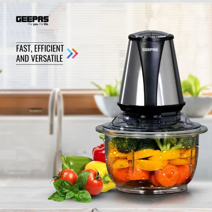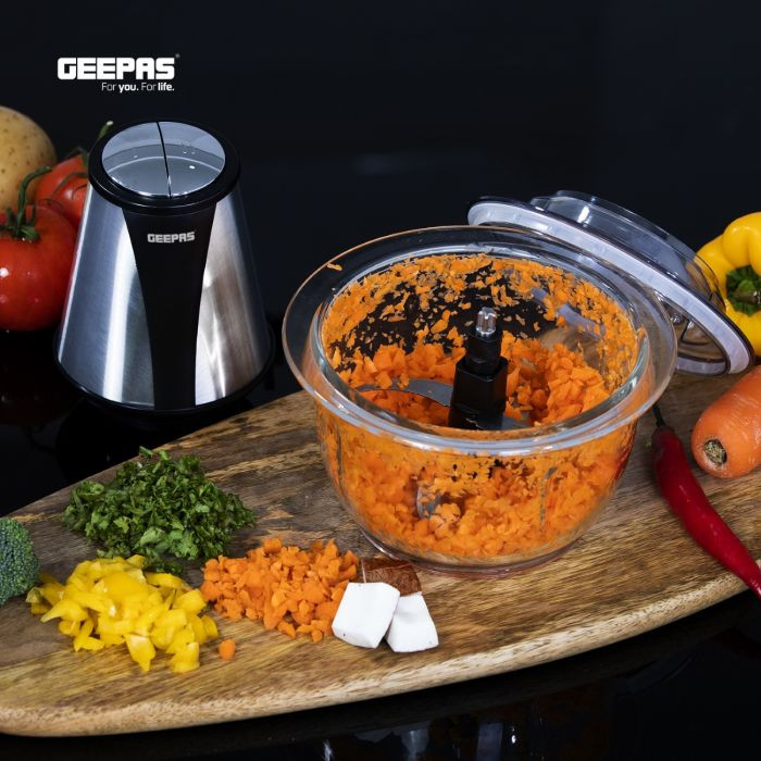 The Geepas GMC42014 Multi Chopper is a strong and small kitchen tool that makes cooking easier. It has a 400W motor and two speed settings, letting you chop, blend, and mince different foods with control. The 1.2L glass bowl is sturdy and keeps your food clean, while also letting you see what's inside. The stainless steel blades work quickly and evenly to give you great results. This chopper is great for vegetables, fruits, nuts, and even meat. It's powerful and practical, and fits well in any kitchen because of its small size.