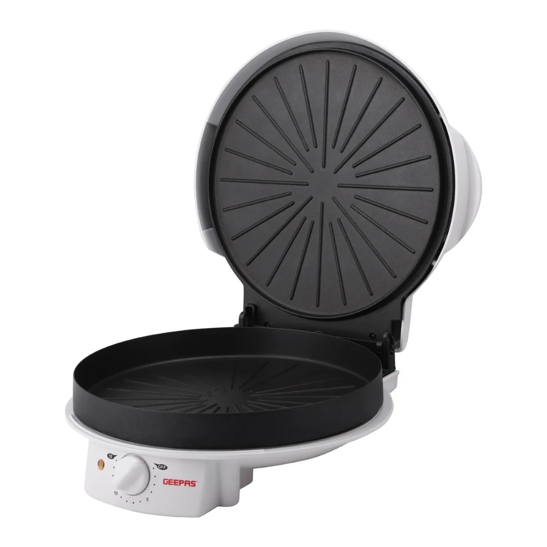 • Strong 1800W heating system for fast and efficient cooking• Big 32cm non-stick baking plate for making large pizzas• Double-sided heating ensures even baking and a crispy crust• Adjustable temperature control for precise cooking results• Multi-functional use – great for pizzas, flatbreads, sandwiches, and grilling• Non-stick coating makes it easy to remove food and clean• Cool-touch handle for safe handling• Compact and stylish design that fits well on countertops• Indicator lights show when the power is on and when it's ready• Anti-slip feet keep it securely in placeSpecifications:• Brand: Geepas• Model: GPM2035• Type: Electric Pizza Maker / Grill• Power: 1800W• Plate Diameter: 32cm• Heating: Double-Sided• Temperature Control: Adjustable• Plate Type: Non-Stick Coated• Functions: Pizza, Grill, Flatbread, Sandwich• Indicator Lights: Power & Ready• Body Material: Stainless Steel & Heat-Resistant Plastic• Color: Black• Installation: Table Top / Countertop