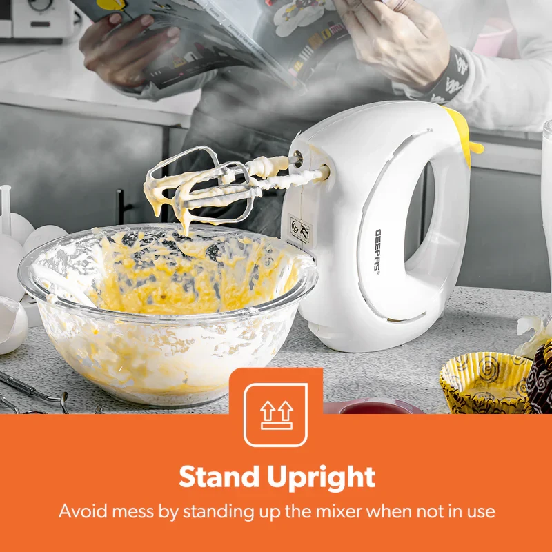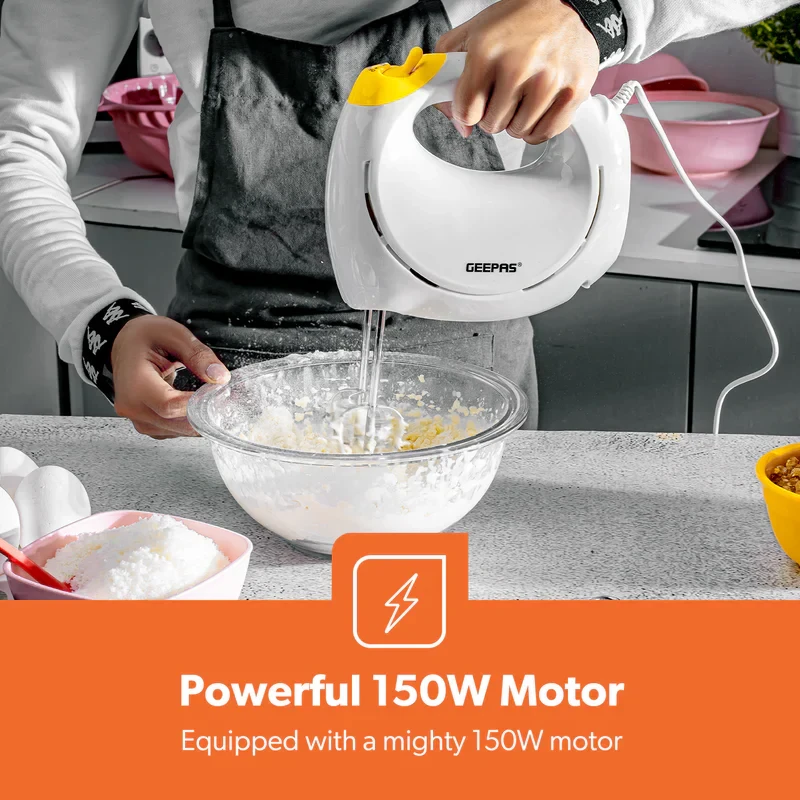 The Geepas GHM43012 Hand Mixer is a small but powerful kitchen appliance that makes baking and cooking much simpler. It features a 150W motor that provides strong performance, along with 7 different speed settings and a turbo function to help with fast and smooth mixing and whipping. The beaters are made of stainless steel, which makes them strong and long-lasting, ideal for tasks like whipping cream, mixing batters, or kneading dough. The mixer is also lightweight, making it easy to handle and control, and the beaters can be removed easily for simple cleaning. This hand mixer is great for everyday kitchen use, offering a good balance of power, ease of use, and a stylish design.