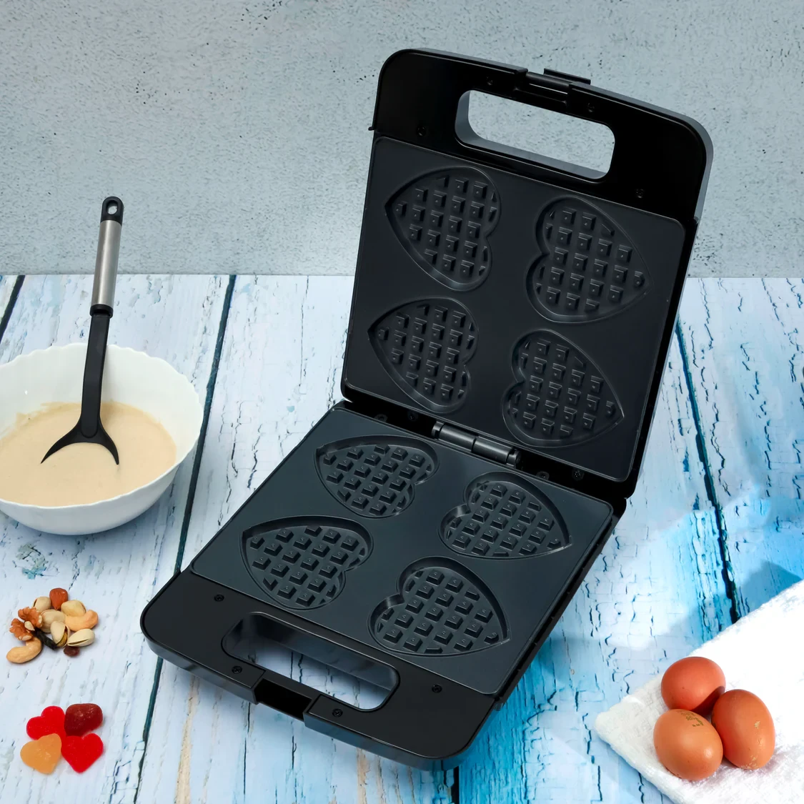 The Geepas Heart Waffle Maker GWM36543 is made to make making heart-shaped waffles quick and safe. It has 1400W of power, which helps cook the waffles fast and evenly. The 4-slice non-stick waffle plates make it easy to remove the waffles without sticking. The housing has a cool-touch surface so you can handle it safely, and the overheating protection makes sure it works without any issues. The design is easy to clean, making it a great choice for home kitchens.