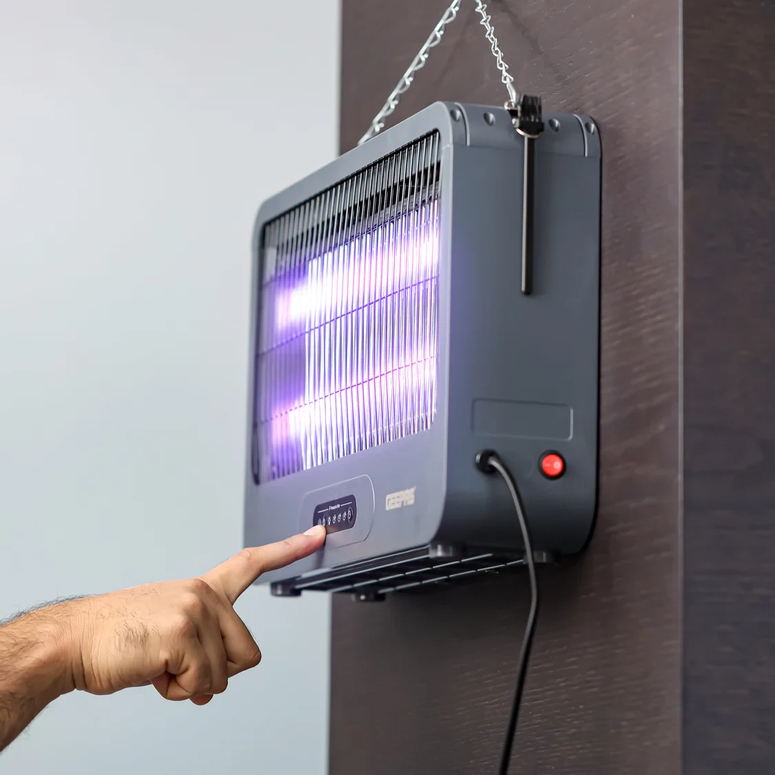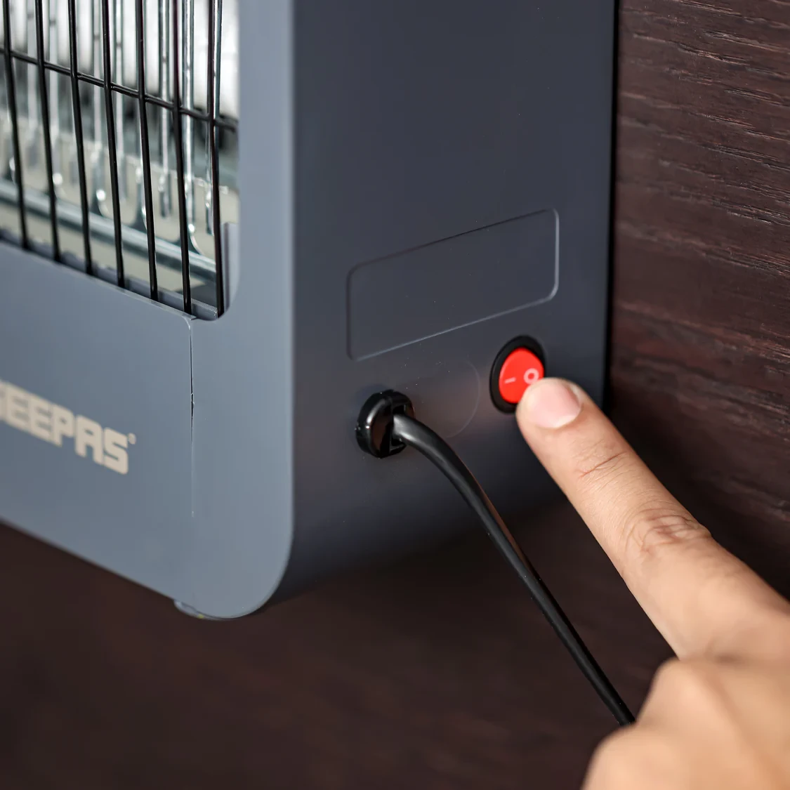 The Geepas GBK25605 Mosquito Killer is a strong and effective way to control insects in both homes and businesses. It uses a bright UV light to draw in mosquitoes and other flying bugs, then quickly and safely removes them with a high-quality double electric grid. The protective mesh cover keeps the device safe for use around kids and pets. You can easily control it from a distance using the included remote, which makes it more convenient to use. It runs on low power, uses no chemicals, and is very safe, helping to keep your space clean and comfortable.