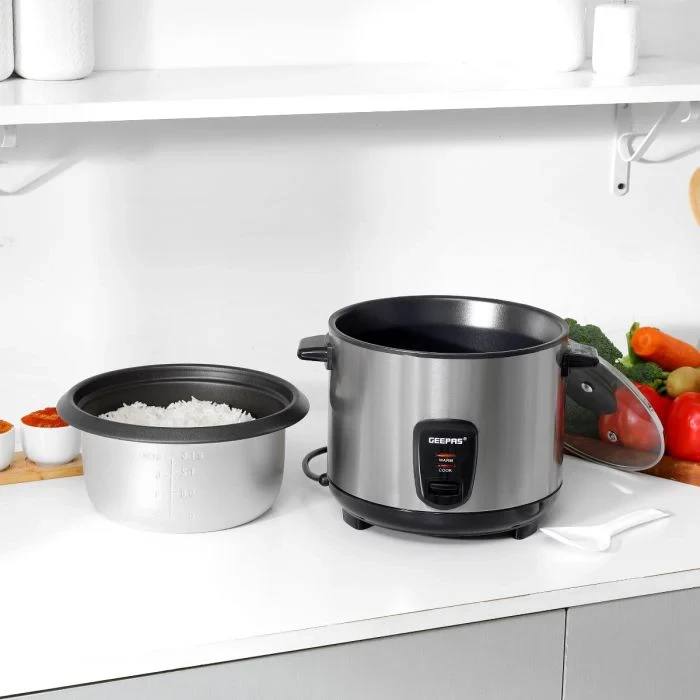 • 1.5L capacity, perfect for small to medium-sized families• Multi-function design – great for cooking rice, steaming vegetables, and keeping food warm• Automatic keep-warm function keeps meals hot and ready to serve• Durable stainless steel body gives it a long life and modern look• Non-stick coated inner pot makes it easy to clean and food comes off easily• One-touch operation makes cooking simple and easy• Energy-efficient heating cooks food evenly and uses less power• Cool-touch handles and body for safe use during cooking• Compact and lightweight design makes it easy to use every daySpecifications:• Brand: Geepas• Model: GRC35040• Type: Multi-Function Rice Cooker• Capacity: 1.5L• Power: 500W (Approx.)• Body Material: Stainless Steel• Inner Pot: Non-Stick Coating• Functions: Cook, Steam, Keep Warm• Operation: One-Touch Control• Indicator Lights: Cooking / Keep Warm• Lid Type: Stainless Steel• Color: Silver / Black• Suitable For: Rice, Vegetables, Soups, Dumplings• Dimensions: Compact Countertop Design