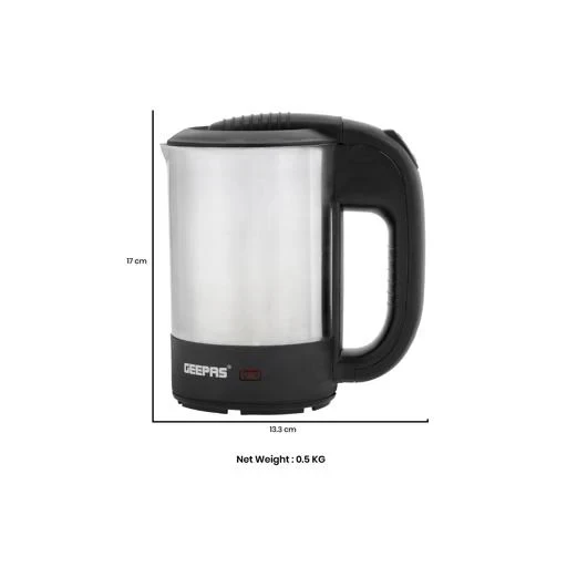 The Geepas GK175 Stainless Steel Travel Kettle is a small and efficient electric kettle made for people who are always moving. It has a 0.5-litre size and 1100W power, which helps it heat up quickly, making it great for use while traveling, at work, or in small homes. Made from strong stainless steel, this kettle is built to last and has a stylish, modern appearance. It includes automatic shut-off and boil-dry protection to keep it safe to use, and its light weight and easy-to-carry design make it simple to take with you wherever you go. Whether you're making tea, coffee, or quick meals, this kettle delivers fast and reliable results every time.