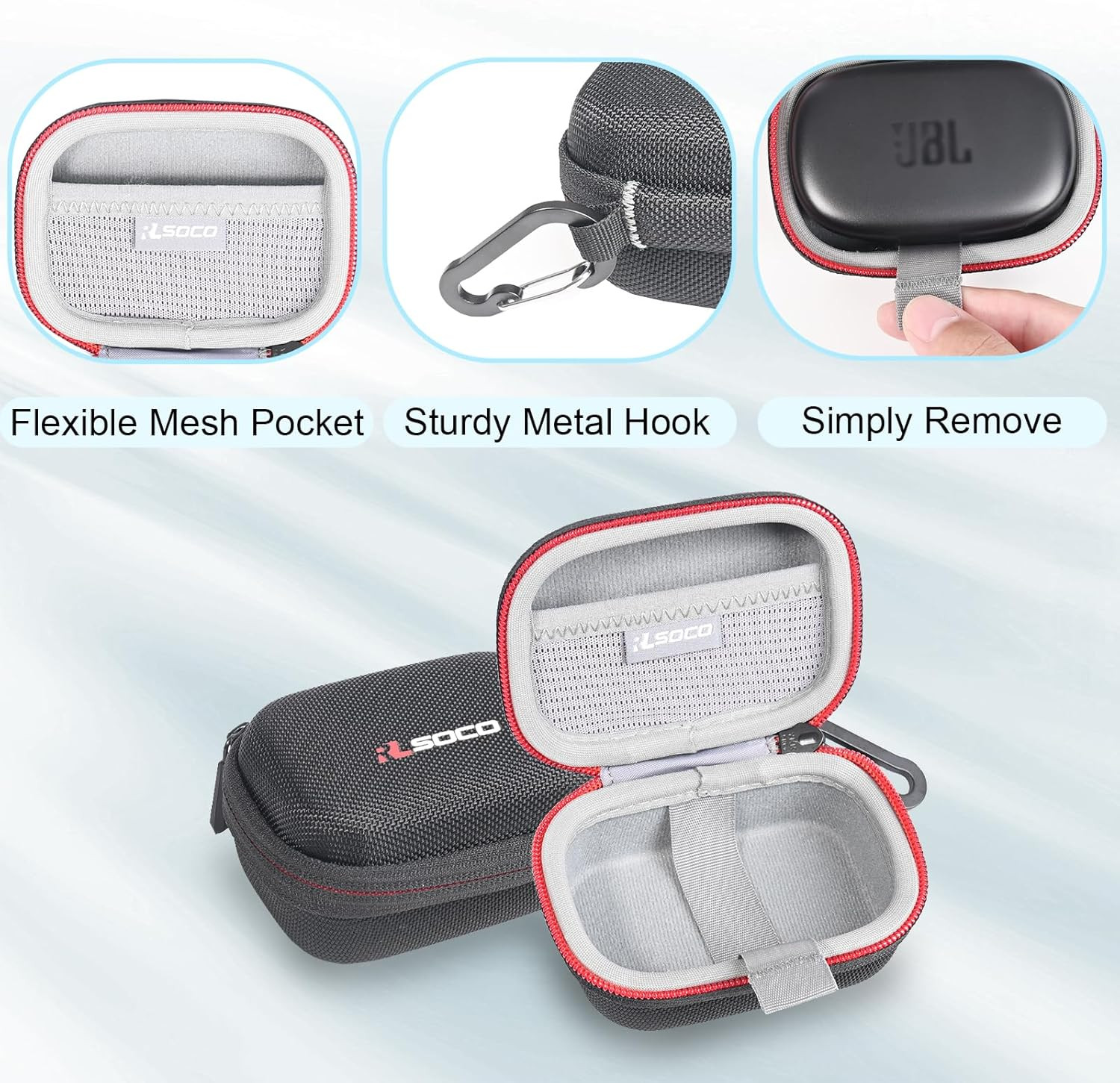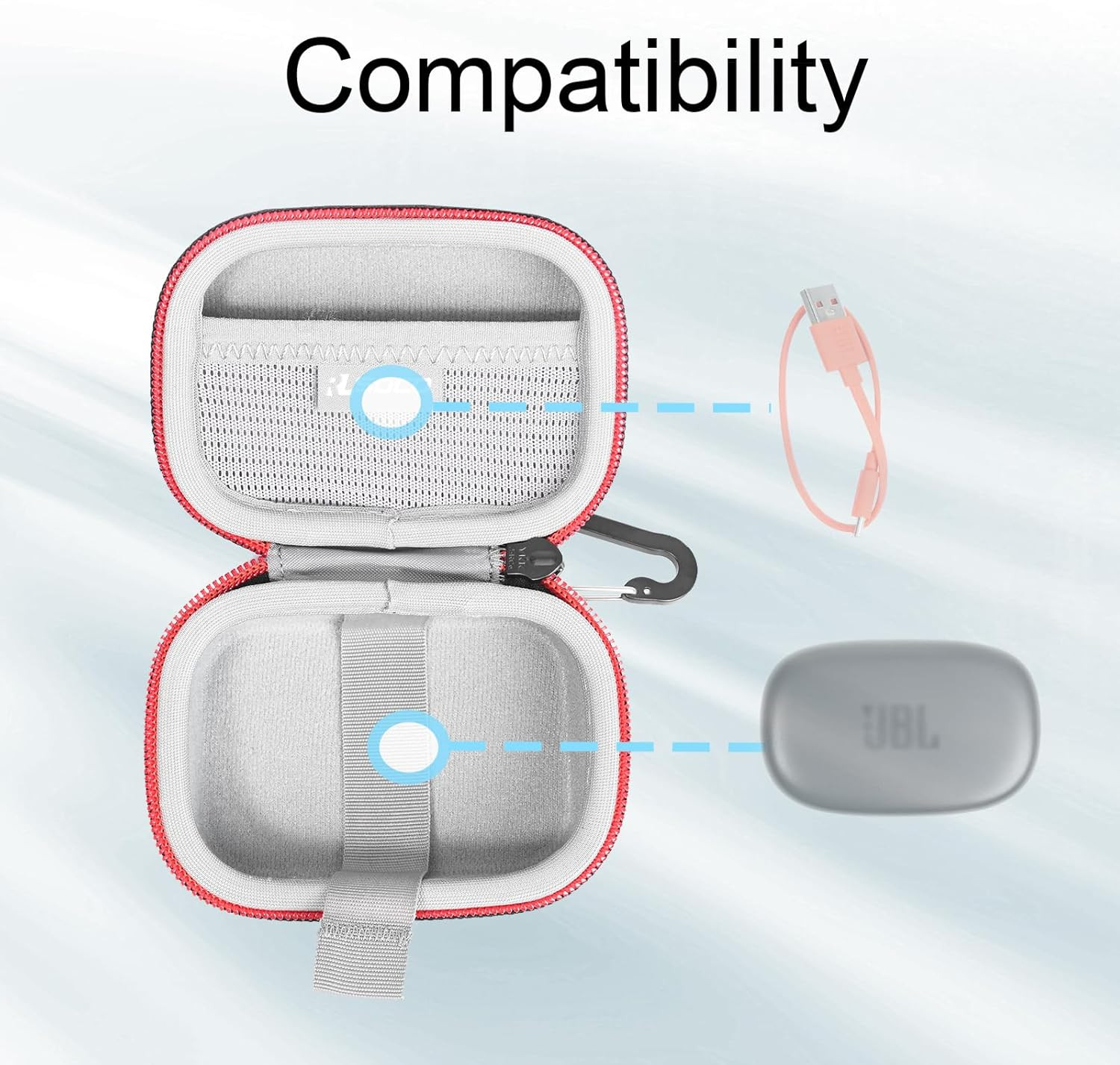 Smart Interior Design: Includes a mesh pocket for cables and a strap to easily lift earbuds out.