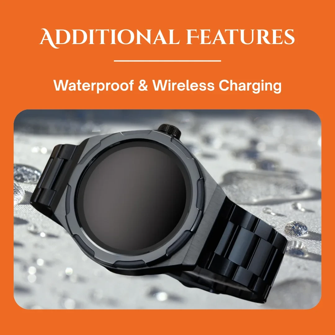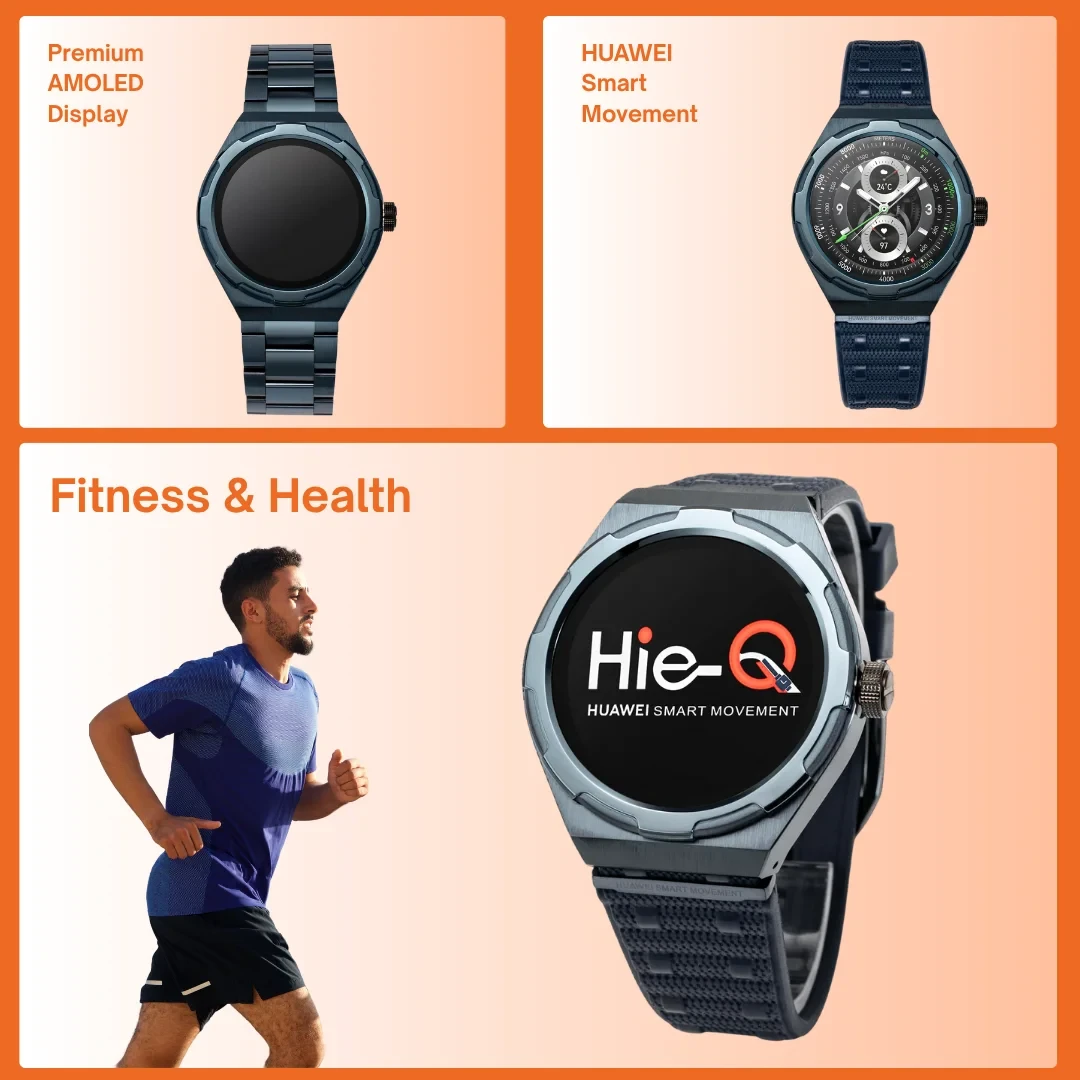 Wireless charging and 5ATM water resistance make it reliable for everyday use, while smart notifications keep you connected without reaching for your phone. The Hie-Q Smart Watch delivers precision, durability, and smart convenience in one elegant design.