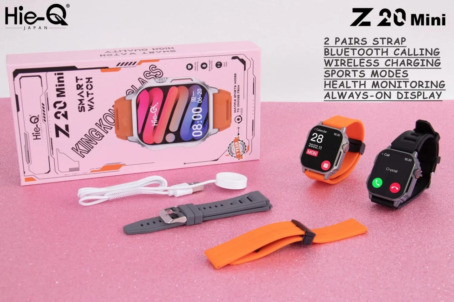 The Hie-Q Z20 Mini Smart Watch combines durability, performance, and modern design in a compact unisex build. Designed for everyday wear, it features a vivid Super AMOLED display that remains bright and clear even under sunlight, providing superior visual comfort and clarity.