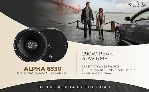 Infinity Alpha 6530 6.5 Inch 3-Way Coaxial Car Speakers with Grille (290W, Black) deliver clear, powerful, and balanced sound for an enhanced in-car audio experience. Part of Infinity’s Alpha Series, these 6.5-inch 3-way coaxial speakers are designed to produce deep bass, detailed mids, and crisp highs for full-range audio performance. With a durable wired design and included grille, the Alpha 6530 speakers offer reliable performance and easy installation, making them an ideal upgrade for factory or aftermarket car audio systems.