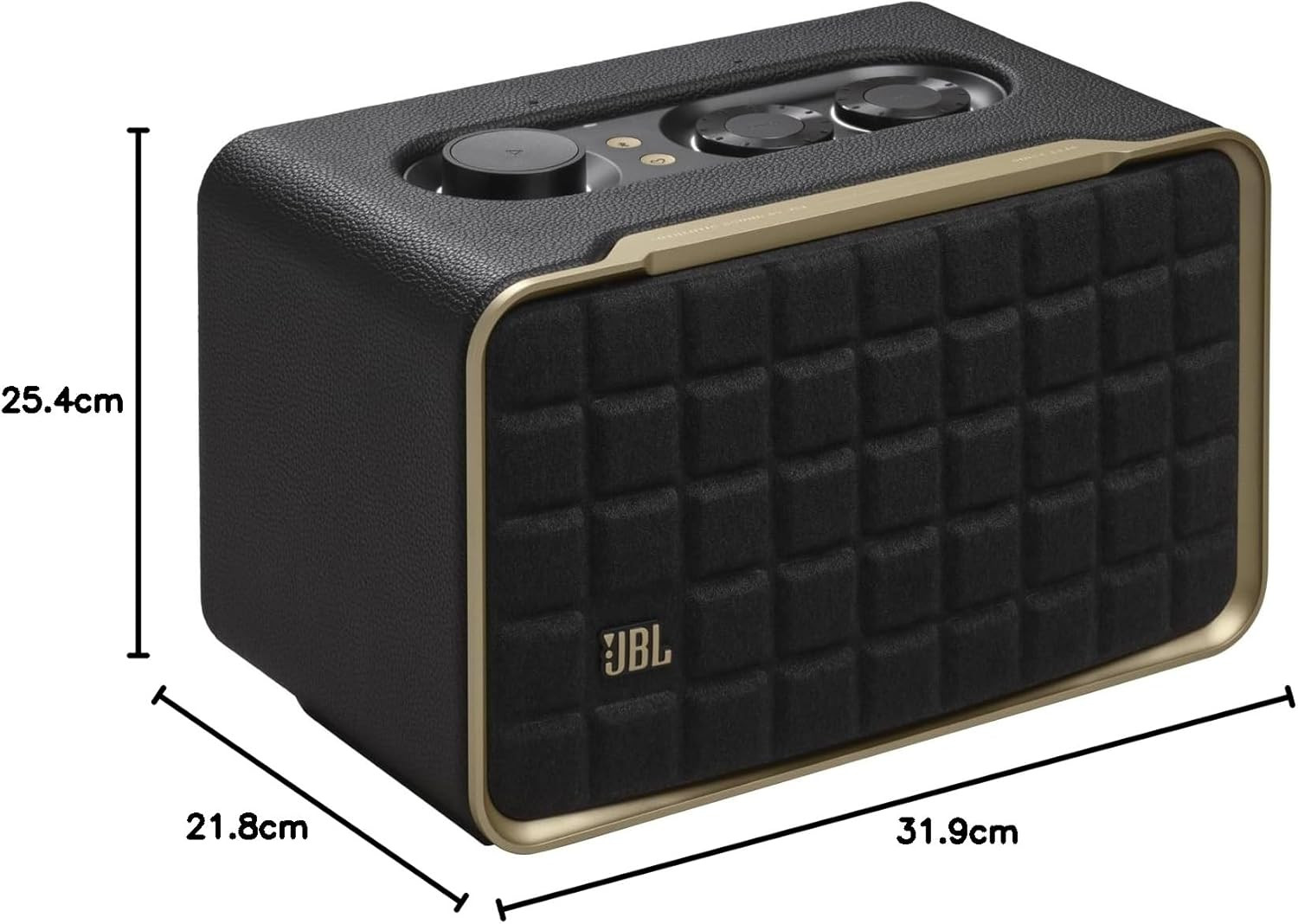 • Retro-Inspired Design: Crafted with a premium aluminum frame, custom leather-like enclosure, and JBL’s iconic Quadrex grille — a stylish nod to the brand’s timeless heritage.