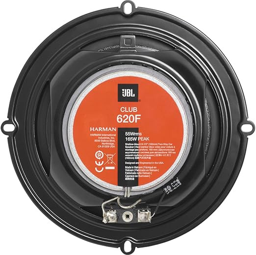 JBL Club 620F 2-Way Car Speaker Set by Harman Kardon (6.5 Inch / 16–17 cm) is designed to deliver clear, powerful, and balanced sound in a slim, flat-mount design. Part of the JBL Club Series, these speakers provide strong bass, detailed mids, and crisp highs, making them an excellent upgrade for factory or aftermarket car audio systems. With a no-grille, flat installation design, the Club 620F is ideal for OEM replacement applications where space is limited.