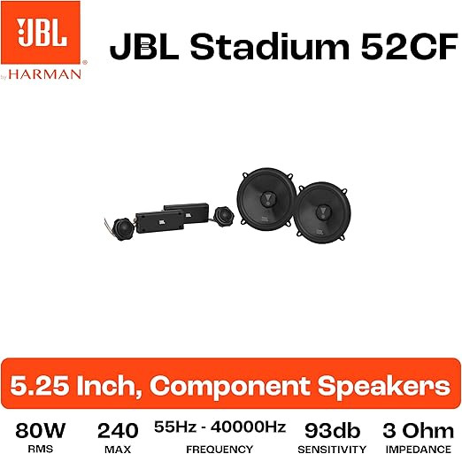 JBL Stadium 52CF 13cm 2-Way Component Car Speakers are engineered to deliver premium, high-performance sound for car audio enthusiasts who demand clarity and precision. This advanced component speaker system produces powerful mid-bass, detailed mids, and crystal-clear highs for a truly immersive listening experience. Designed with JBL’s advanced acoustic technology, the Stadium 52CF ensures accurate sound reproduction and wide sound coverage, making it an ideal upgrade for high-end factory or aftermarket car audio systems.