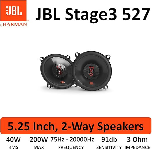 JBL Stage 3 527 5.25 (13cm) Speaker Set delivers powerful, clear, and balanced sound to enhance your in-car audio experience. Engineered with JBL’s advanced acoustic technology, this speaker set produces rich midrange, crisp highs, and improved bass response for a dynamic listening experience. Its compact 5.25-inch size makes it ideal for vehicles with limited mounting space, while durable construction ensures long-lasting performance.