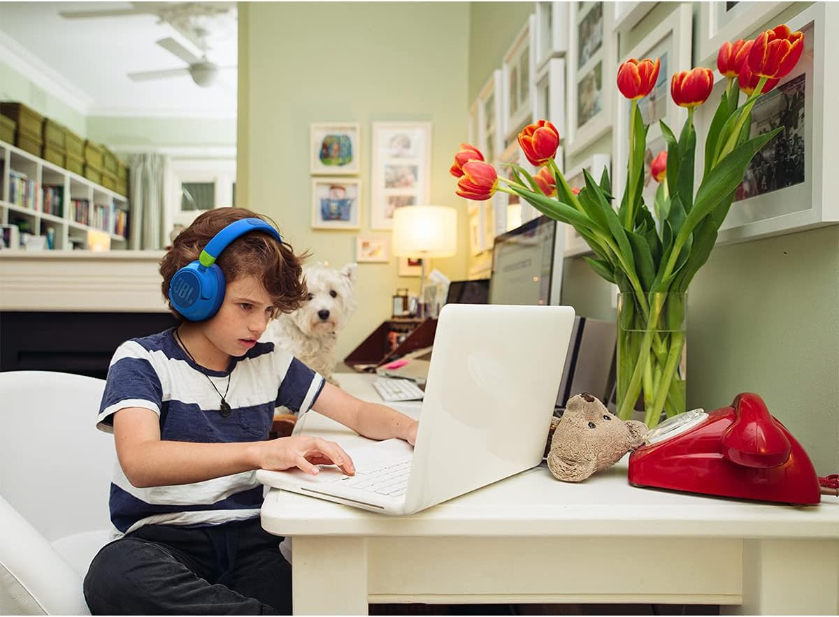 Built from durable, child-friendly materials, the JR460NC ensures comfort and safety, even for the smallest users. The soft padded headband and ear cushions provide a secure fit for long listening sessions. With up to 30 hours of battery life and quick 2-hour recharging, your child can enjoy a full week of fun, learning, and music. The built-in microphone allows for easy communication with friends, family, and teachers—perfect for online learning or calls. Simple controls make it easy for kids to use independently, combining safety, comfort, and legendary JBL sound.