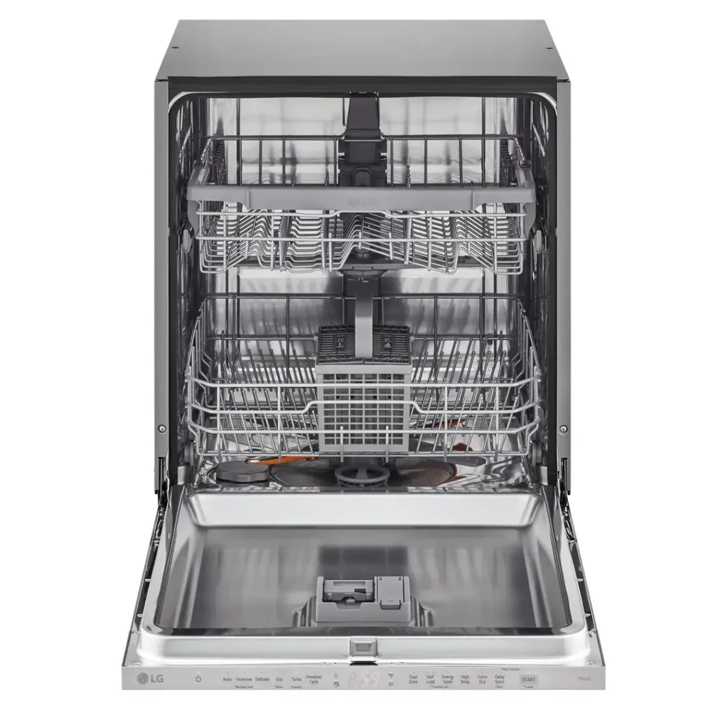 Experience superior cleaning performance with the LG QuadWash Built-In Dishwasher (DBC512TSE). Designed with innovative QuadWash™ technology, it ensures every dish is cleaned from multiple angles for a spotless finish. The EasyRack™ Plus system offers flexible loading options for up to 14 place settings. Enjoy smart control through the LG ThinQ™ app for convenience and real-time updates. Built from durable stainless steel, it combines hygiene, efficiency, and quiet operation in one sleek design.