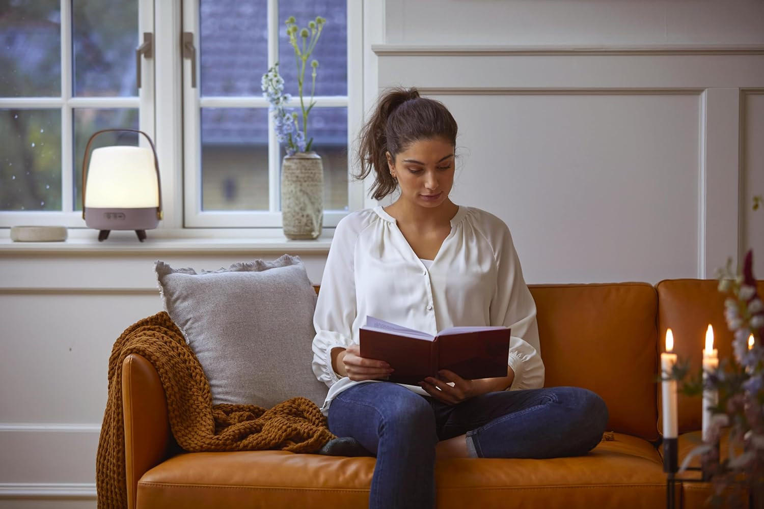 The soft white LED light provides a warm, inviting glow that you can easily adjust to your preferred brightness—ideal for cozy evenings or aesthetic setups.Crafted for Portability & Style