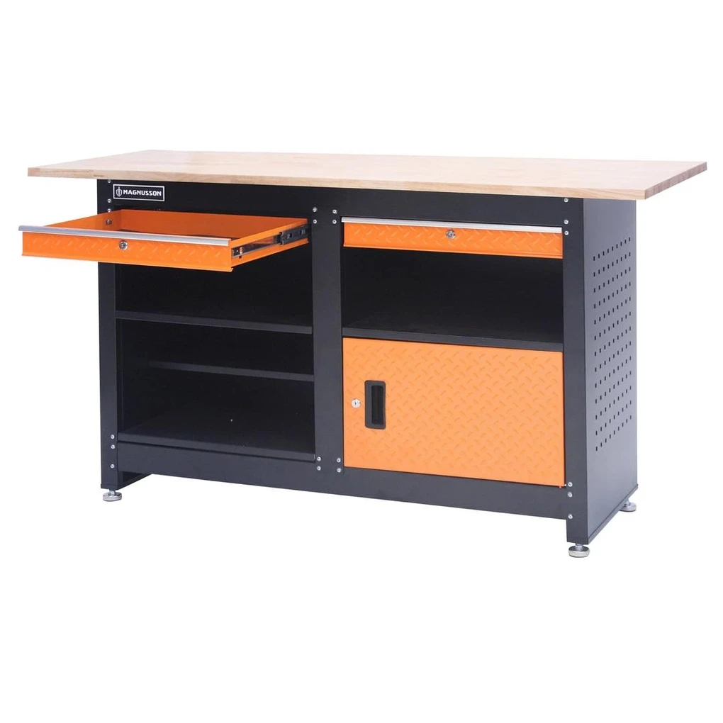 Upgrade your workspace with the Magnusson Steel Fixed Work Bench with Drawers, engineered for strength, durability, and functionality. Built with a solid hardwood worktop and powder-coated steel frame, this heavy-duty bench supports a total weight capacity of 177 kg, making it ideal for professional workshops, garages, and DIY setups.