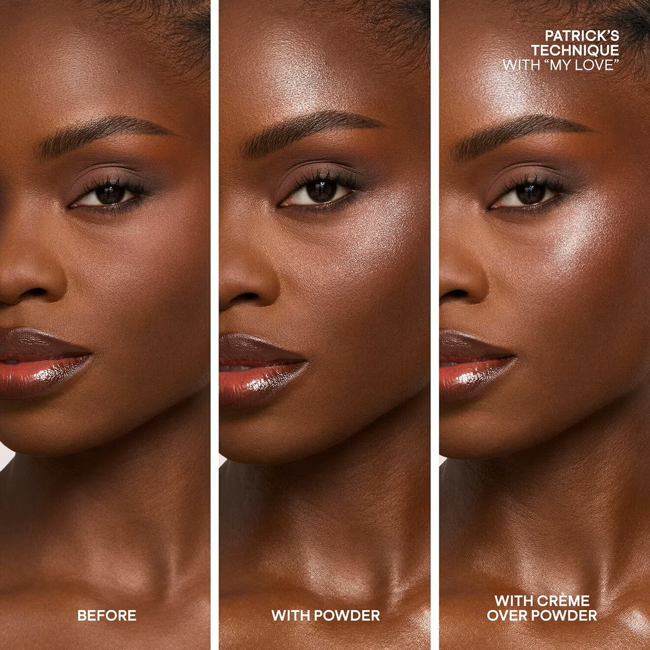 Step 3: Layer the powder highlighter over the crème for enhanced luminosity and longevity.