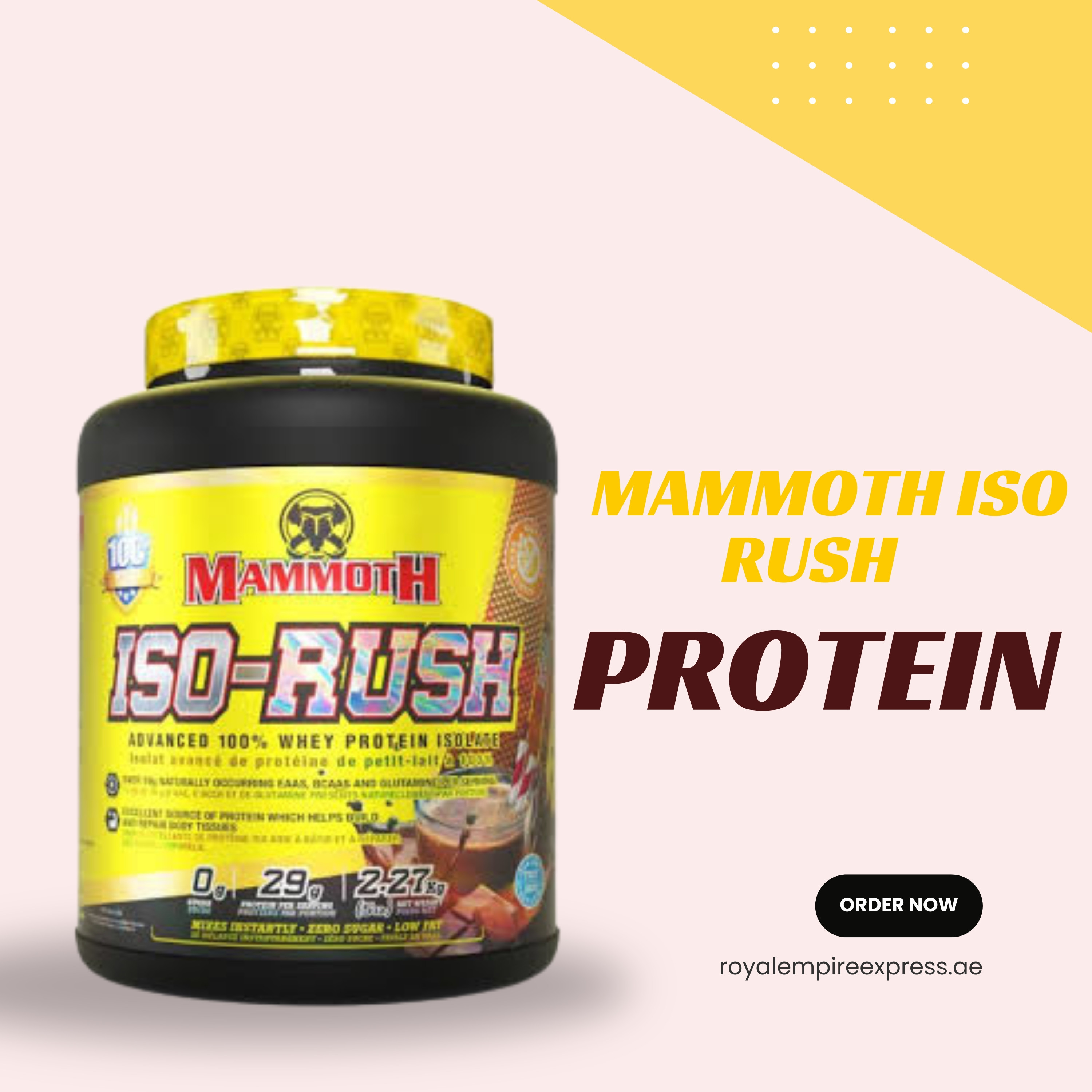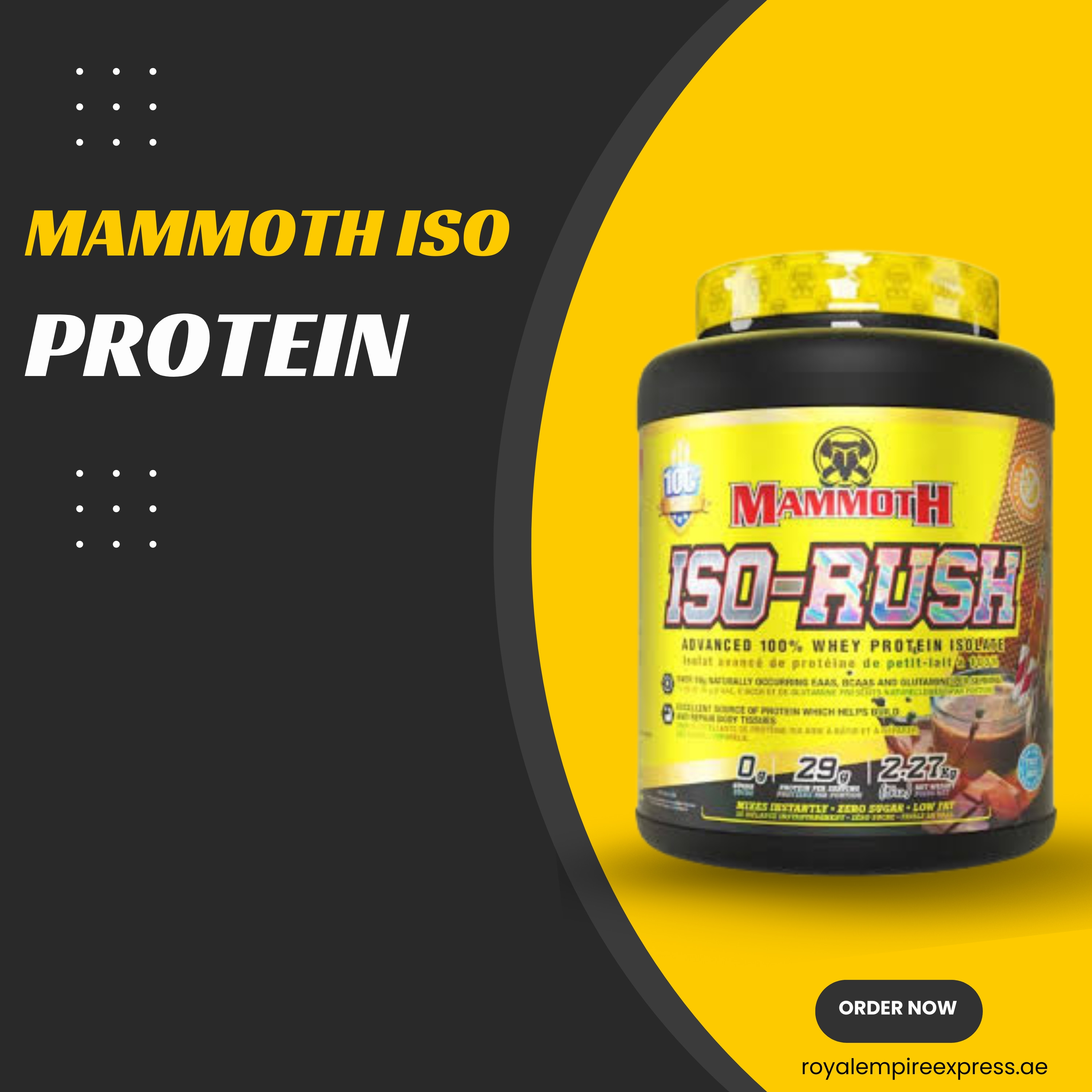 Mammoth ISO-RUSH Whey Protein Isolate is a high-quality, fast-absorbing protein powder formulated for athletes and fitness enthusiasts seeking lean muscle growth and quick recovery. Made with whey isolate, it provides pure protein with minimal fat, sugar, and lactose for superior digestibility.