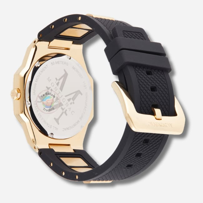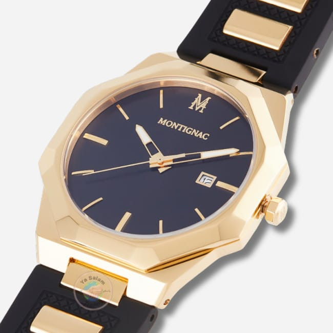 The Montignac Golden Dial Quartz Men’s Watch is designed with a refined gold-tone finish that delivers a balanced and classic appearance. The watch features a black dial that provides clear contrast and easy readability, making it suitable for everyday wear as well as formal occasions. Its overall design focuses on simplicity and structured styling.