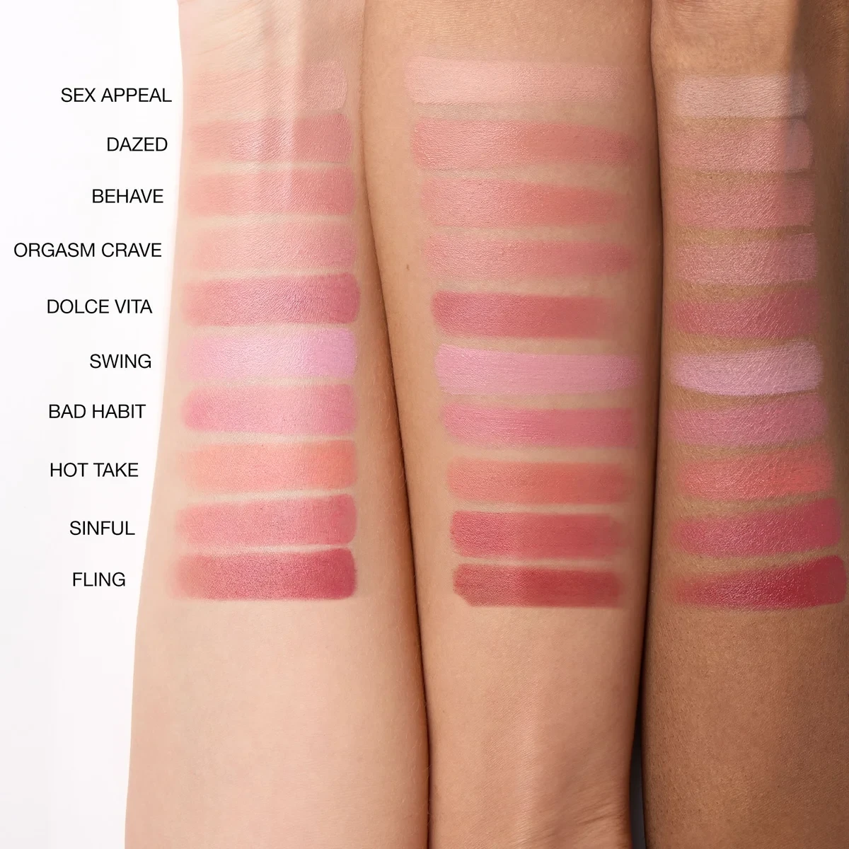 Featuring a smooth cream-to-powder texture, the formula melts into the skin and blends effortlessly to create a soft-focus, diffused finish. The lightweight texture applies evenly without disrupting previously applied base products, making it suitable for on-the-go touch-ups or adding finishing colour throughout the day. Shades can be worn alone for a monochromatic look or layered and combined to customise coverage and intensity.