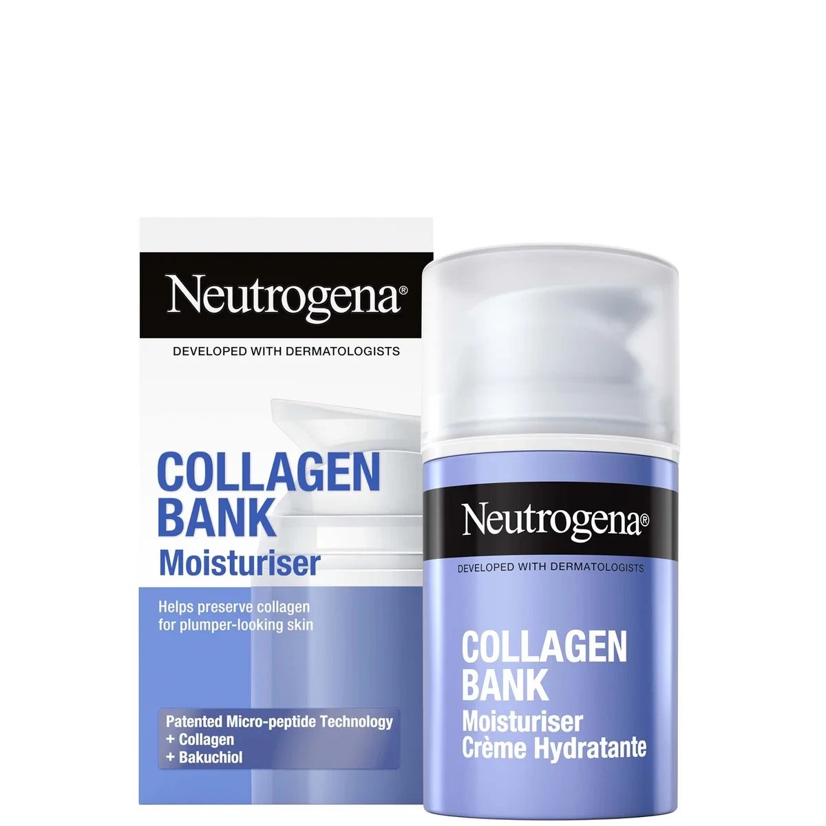 Neutrogena Collagen Bank Moisturiser is a hydrating face cream developed to support visibly firmer-looking skin, making it suitable for mature skin types. Designed for daily use on the face and neck, the cream provides moisture while helping improve the appearance of skin elasticity.