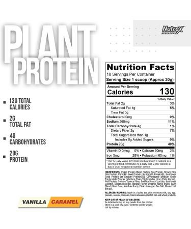 Nutrex Natural Series Plant Protein Vanilla Caramel 1.2 lb
