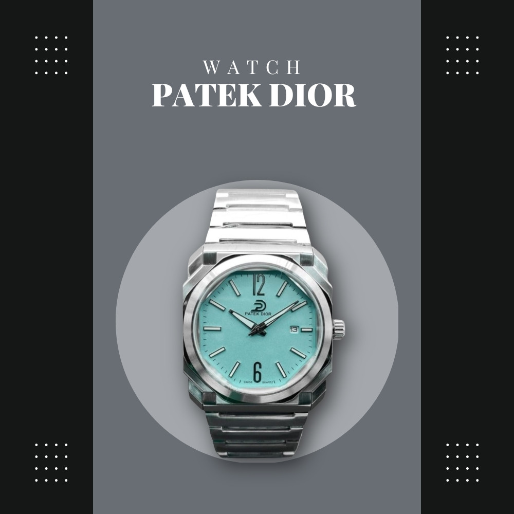 The Patek Dior Turquoise Dial Stainless Steel Swiss Movement Luxury Watch combines timeless elegance with exceptional craftsmanship. Featuring a vibrant turquoise dial set within a polished stainless steel case, this timepiece offers a sophisticated and contemporary look suitable for any occasion.