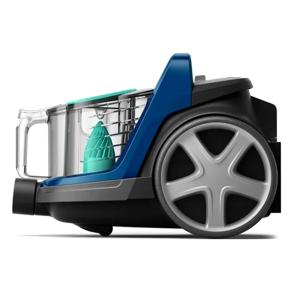Equipped with PowerCyclone 7 technology, it boasts an aerodynamic design that reduces air resistance, ensuring constant and powerful suction for longer stretches of cleaning. The TriActive multi-action nozzle elevates performance further with three steps in one: a specially designed soleplate for deep carpet cleaning, a wide front opening for large debris, and side brushes and air channels to capture dust along walls and furniture edges.